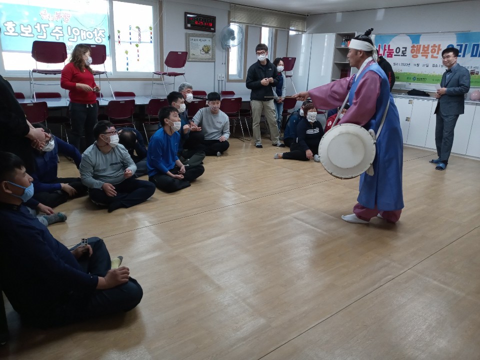 2020.10.27(화) 행복나눔장애인주간보호센터로 판소리와 가야금, 레크리에이션을 준비하여 공연봉사활동을 하였습니다^^