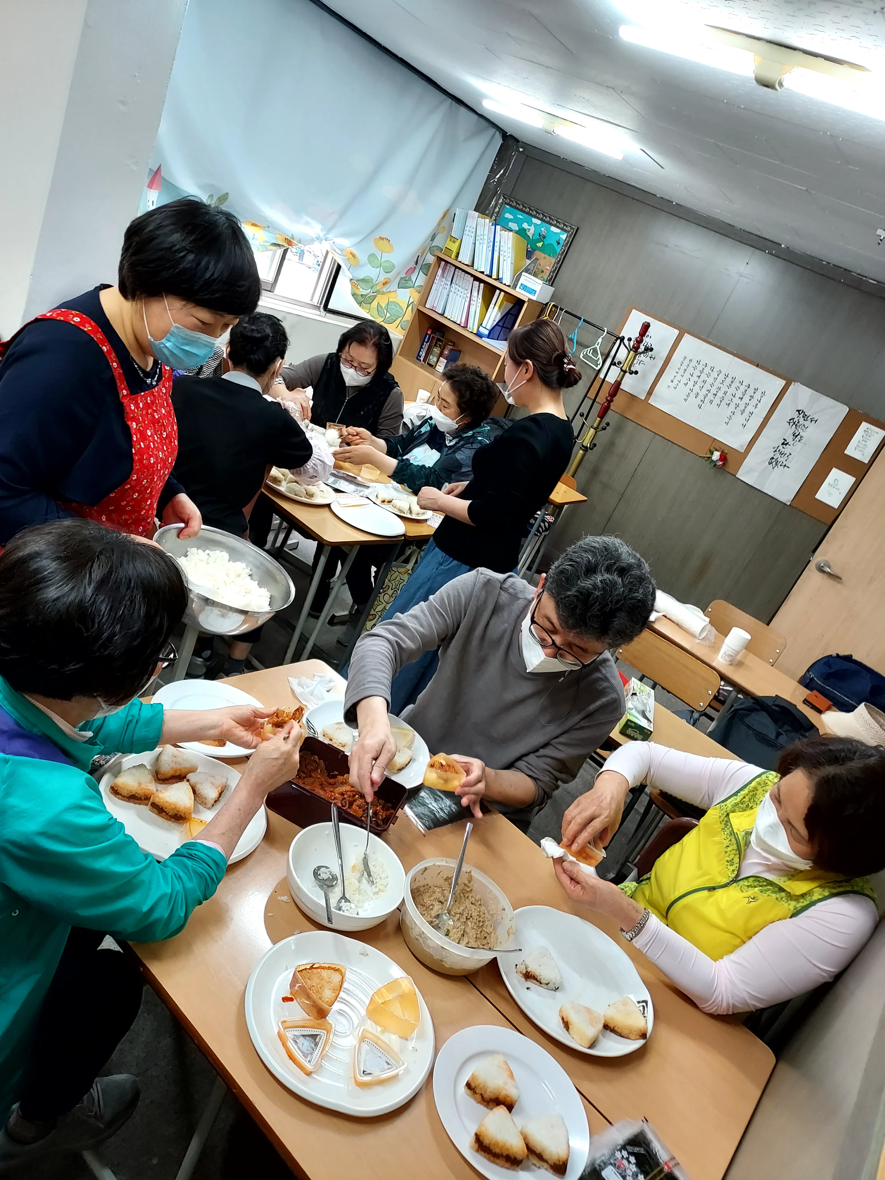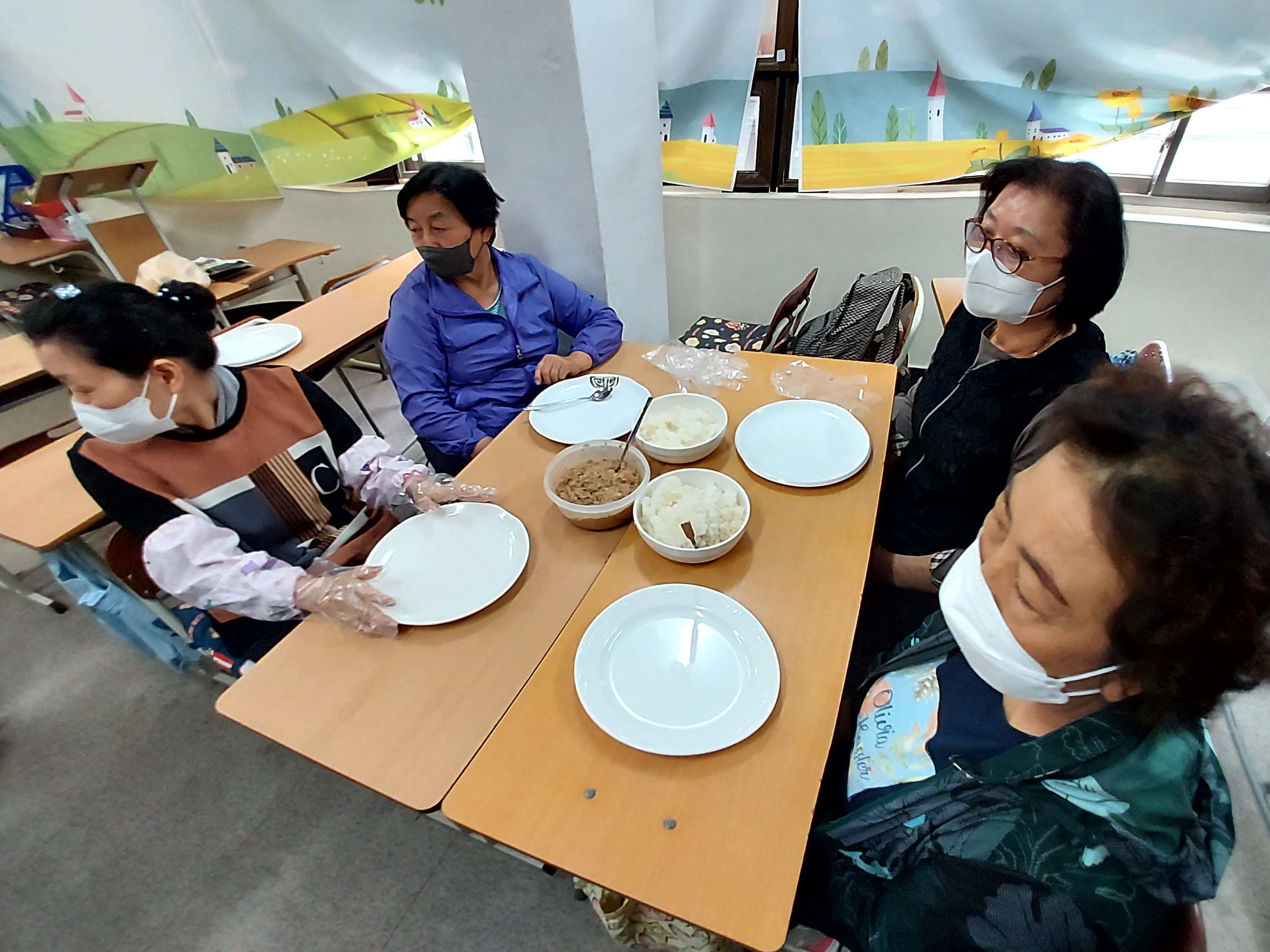 봉사활동 전 미리 연습 하셨습니다.