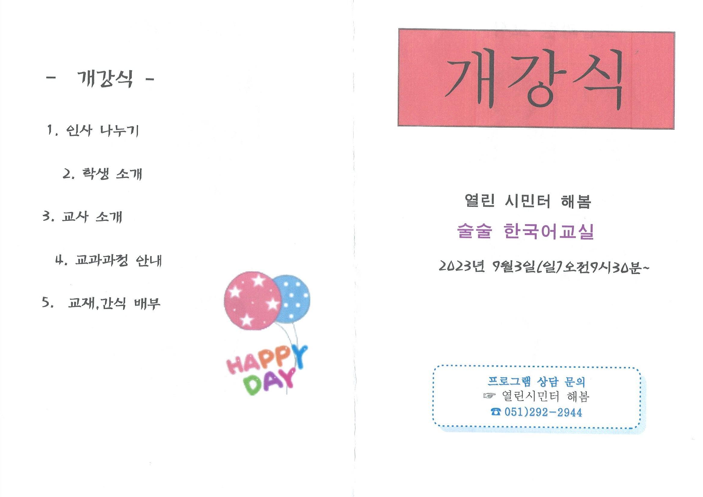술술 한국어교실 "9월30일까지 모집"